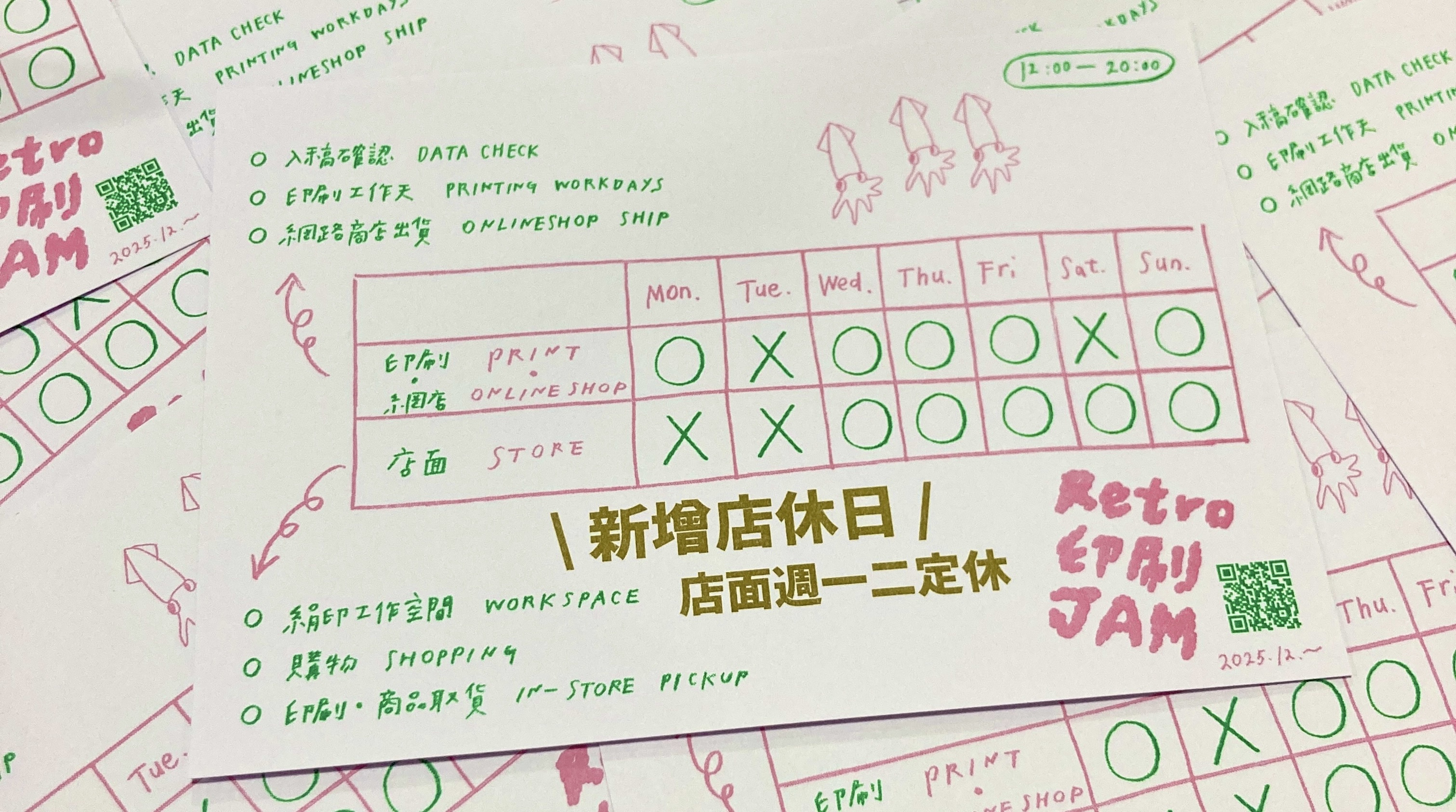 ★ 店面定休日:每週二(絹印工作空間 / 購物 / 網路商店商品訂單出貨:順延)