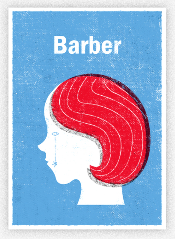 RETRO印刷的油墨,不同的油墨重疊時會混色、可能產生出另一種新的顏色。這次範例的圖稿當中,頭髮的紅色和背景的藍色相疊而產生了紫色的效果。調整重疊部分顏色的濃淡就可能產生不同混色效果、表現的可能性無限寬廣。