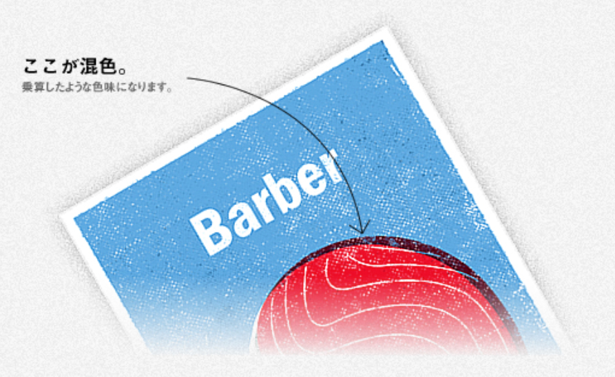 由於油墨會混色,如果不想要混色發生,就必須將兩種顏色重疊的部分製作「鏤空」。
