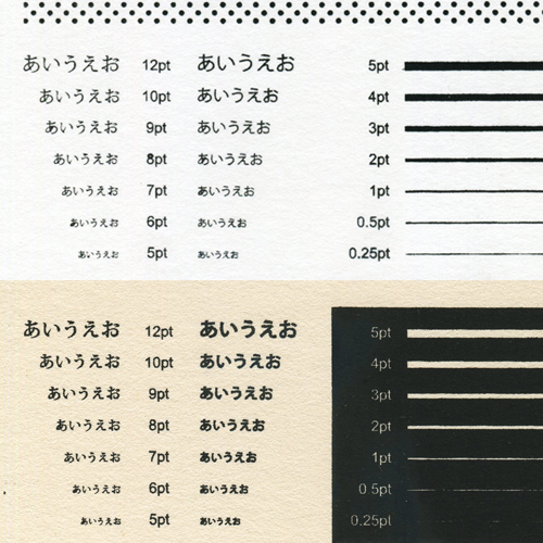 使用Illustrator製作的情況,線條粗細推薦以1pt以上製作。1pt以下雖然可以製版・印刷,但依照印刷時不同力道大小、素材表面粗細程度等,可能會有無法出印刷出圖案的情況,或是油墨容易乾燥於網孔中造成塞版的情況。