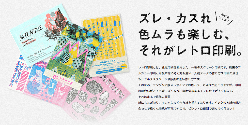 RETRO印刷(レトロ印刷)即是使用自動孔版印刷機(RISOGRAPH)進行的簡易印刷。