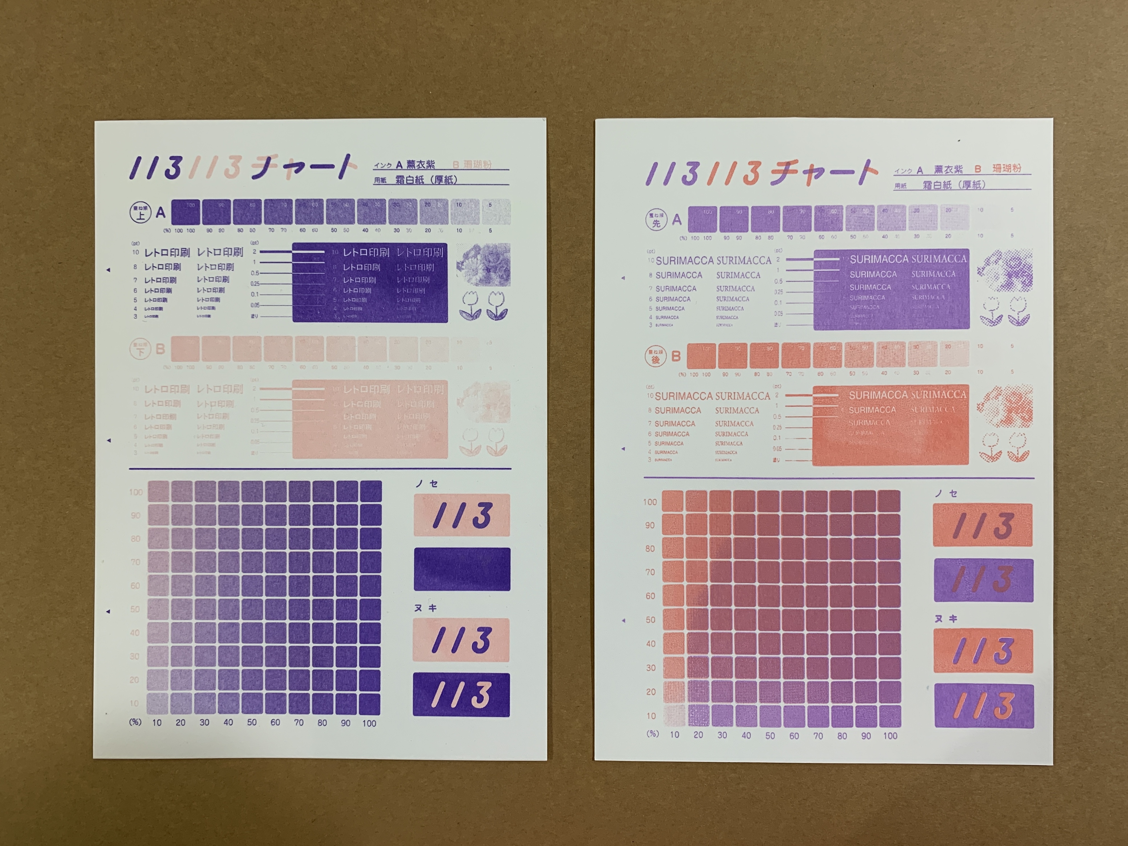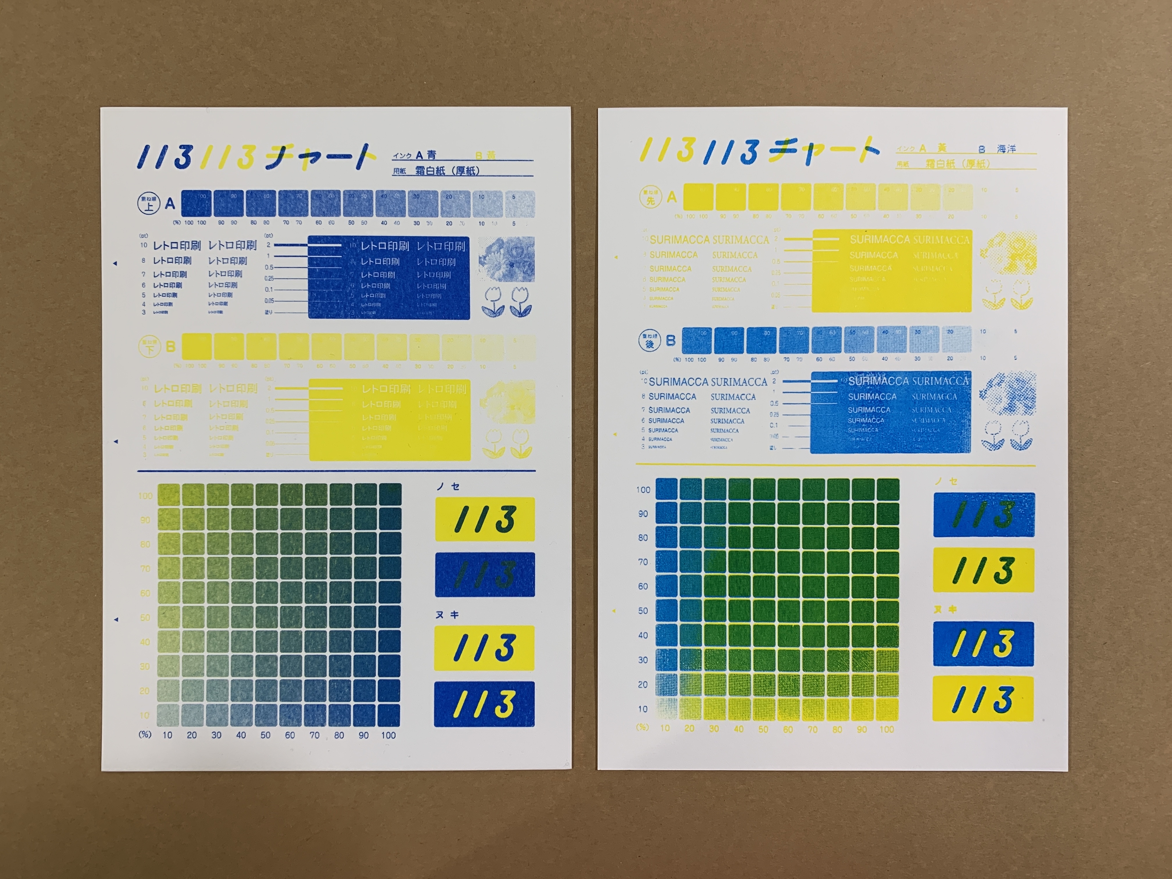 ※ 左:RETRO孔版印刷(RISOGRAPH) / 右:SURIMACCA絹印