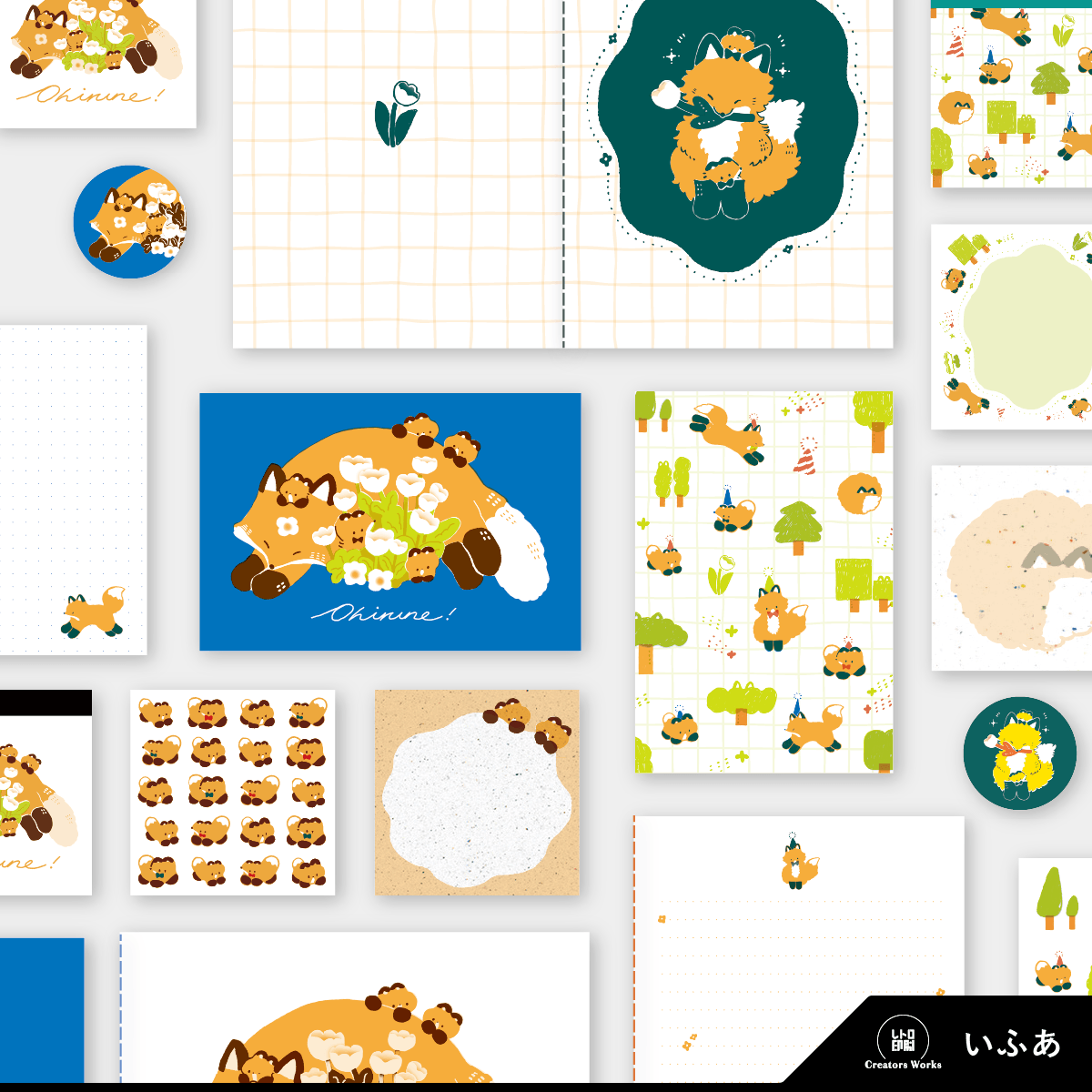 香港出身。日本で仕事をしながら、太い狐型の妖精「狐狐」をモチーフにしたふかふかな狐のイラストを展開しています。